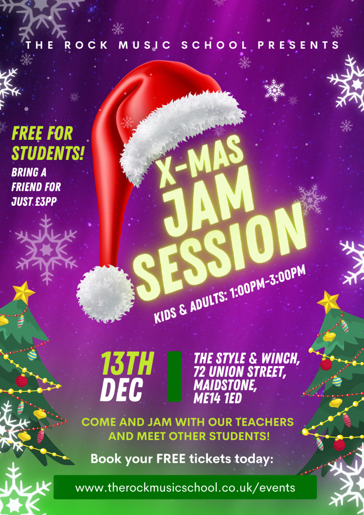 Get ready to rock around the Christmas tree at our festive Jam Session, exclusively for students of The Rock Music School and their friends!